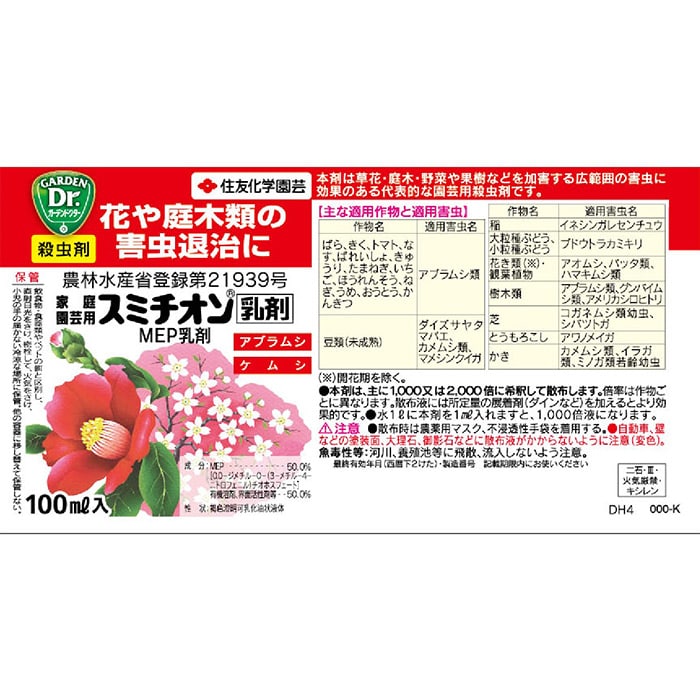 草花・庭木・野菜や果樹などを加害する広範囲の害虫に効果のある代表的な園芸用殺虫剤です。