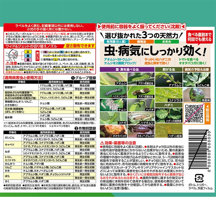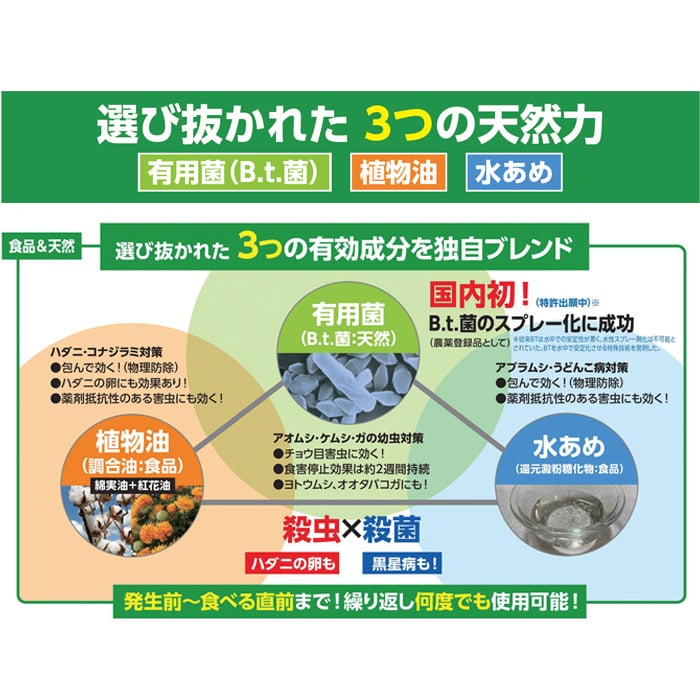 効き目確かなナチュラル系成分配合でしっかり効く天然系の殺虫殺菌スプレーが登場!