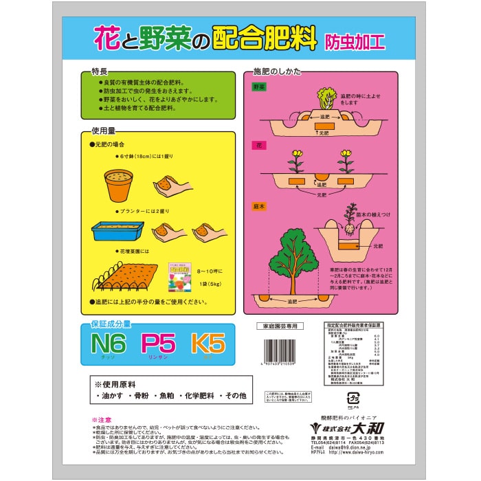 ●油かす・骨粉・魚かすほか、化学肥料をバランスよく配合