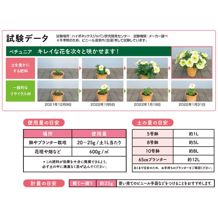 良質な有機物+肥料成分で効果は約2カ月。