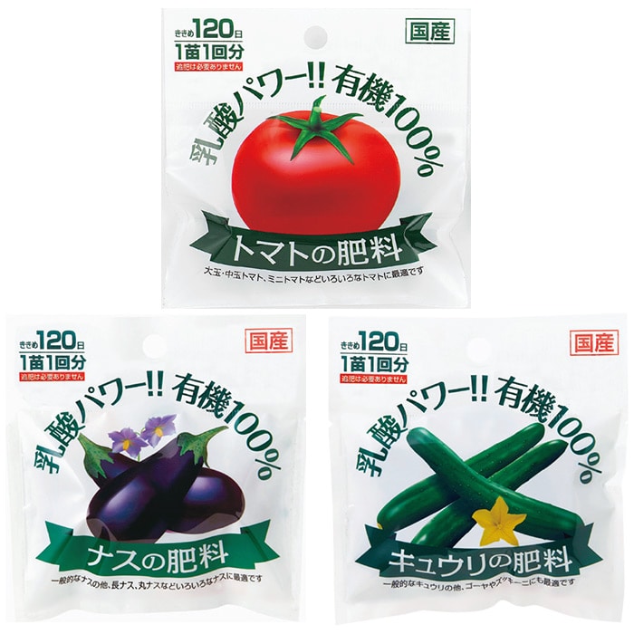 乳酸パワー有機100% 「トマト」「キュウリ」「ナス」の肥料 お買い得セット
