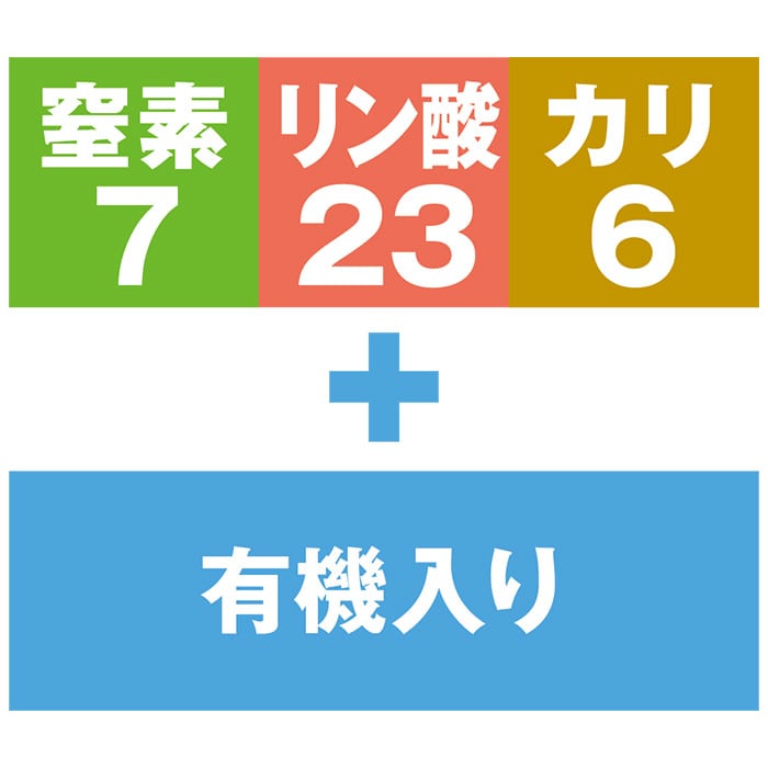 リン酸を多く含み、根の張りをよくします。さらに魚かす類を主体とした有機成分を配合した緩効性肥料です。
