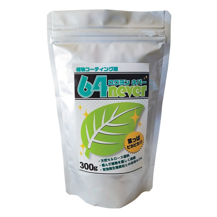 原料である天然セルロースは、植物の細胞壁の主成分でもあり、親和性が高く、傷んだ植物の表層部(クチクラ層上部やワックス層)を保護、過剰蒸散を抑制し、しおれ症状を緩和、葉面のツヤや照りを出す効果が期待できます。