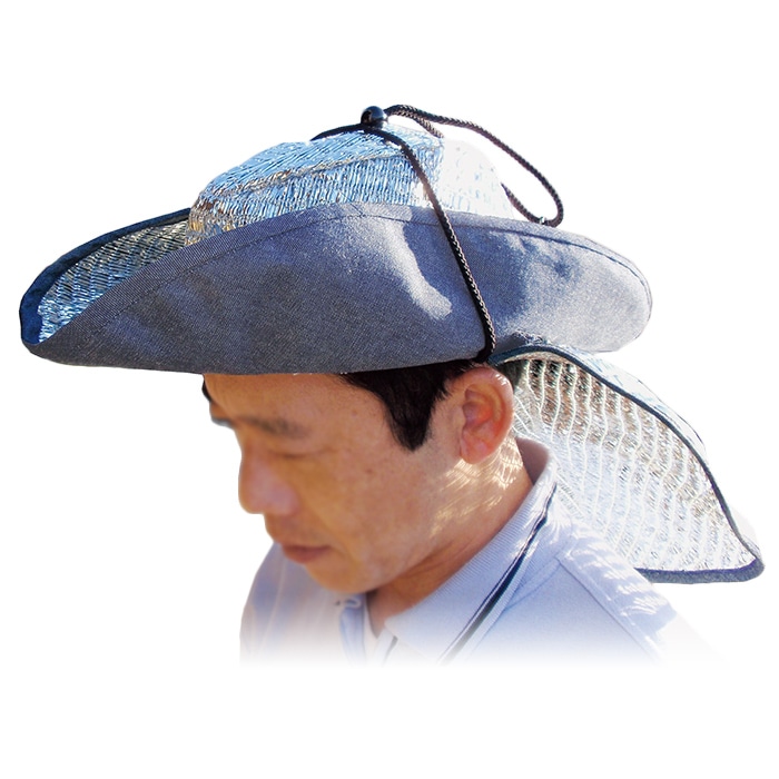 カウボーイハット形にしても、通常のつばあり帽子としても使える、男女兼用の「涼かちゃん」。汗取りパッドはワンタッチで取り外しでき、洗濯もできます。園芸作業からレジャーまで気軽にお使いください。