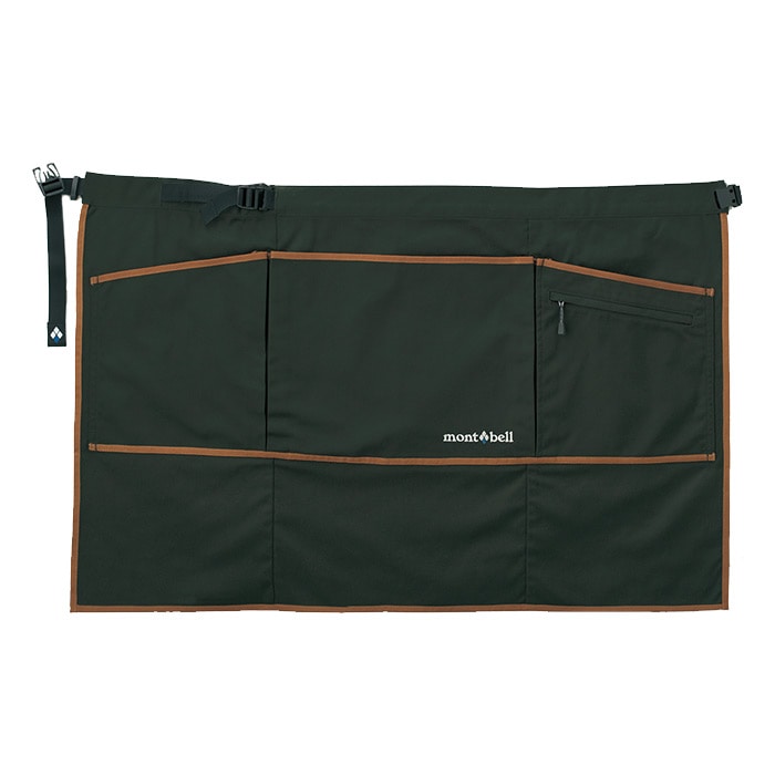 コットンの風合いと速乾性を併せ持ち、耐摩耗性にも優れる生地を使用した、収納力に優れるエプロンです。大容量のポケットを4カ所配置し、いずれもグローブなどのさまざまな道具を入れられます。右側のウエスト調節ベルトのバックルはフック式なので、ハサミケースなどを通せます。