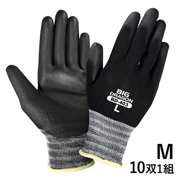手のひら側はポリウレタンコートで抜群の柔らかさ。軽くて丈夫、作業効率アップ。背抜き加工で蒸れにくい。