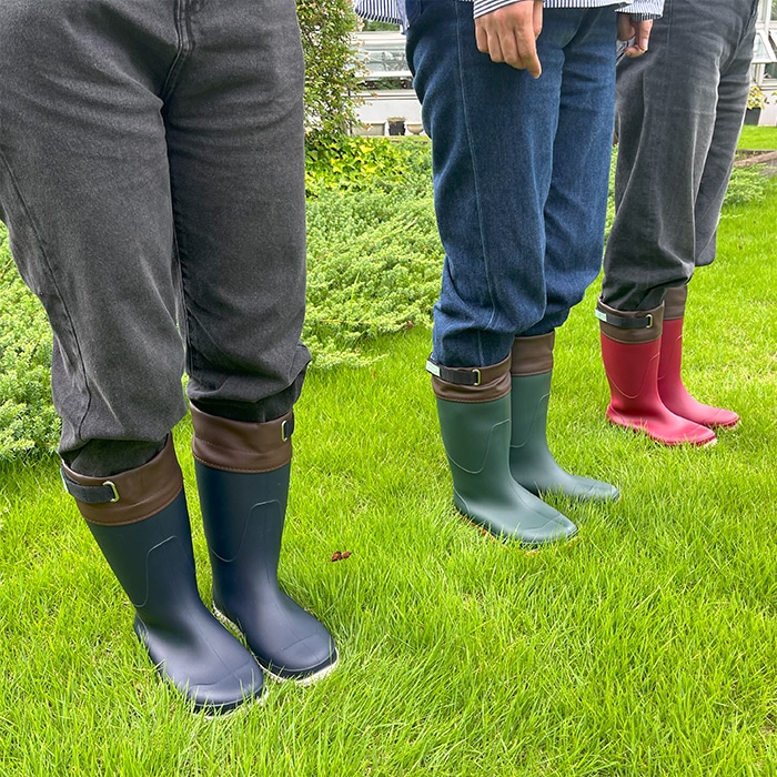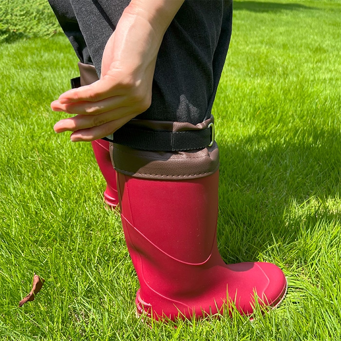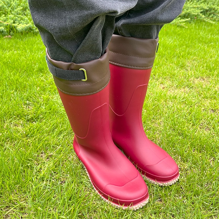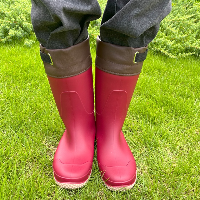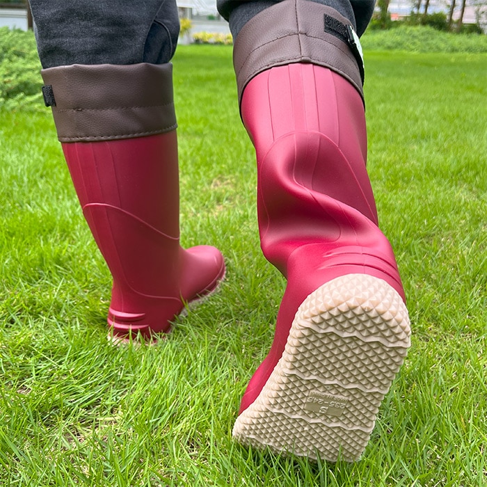 農林女子長靴 ワイン お手入れしやすく劣化に強いPVC素材を使用。