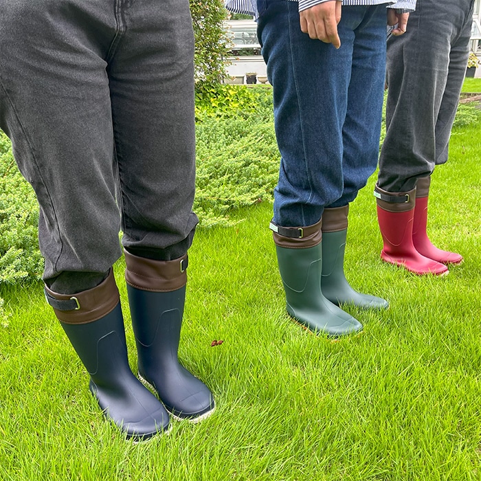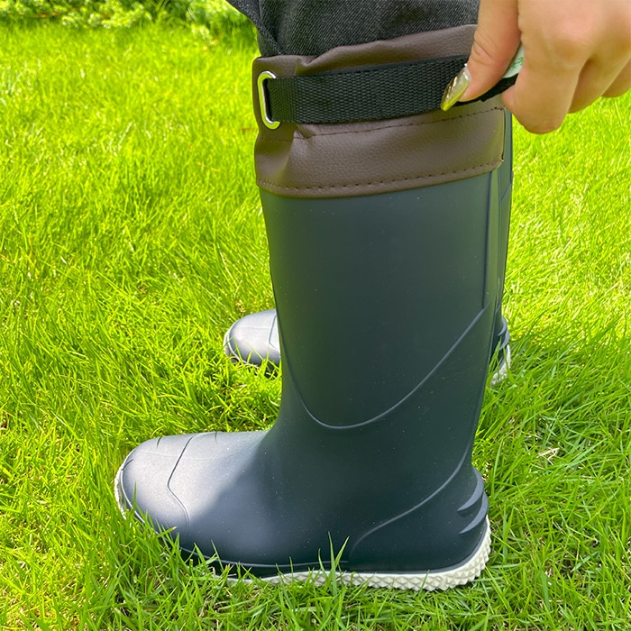 農林女子長靴 ネイビー お手入れしやすく劣化に強いPVC素材を使用。