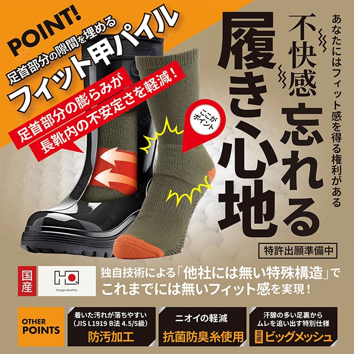 特殊仕様のボリュームある足首部が長靴内の不安定さを軽減