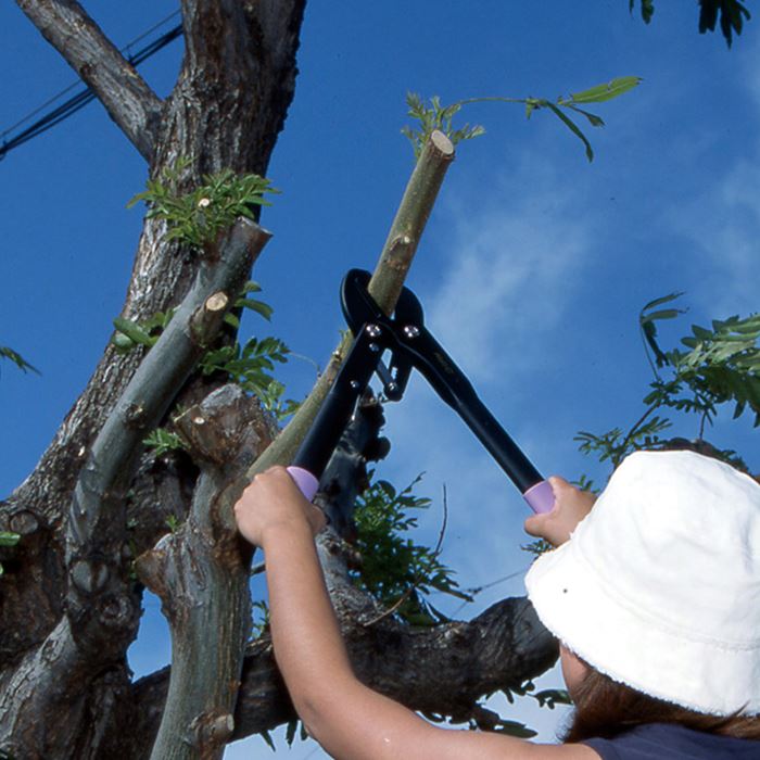 ノコギリで切っていた太い枝も簡単に切れ、楽に剪定ができます