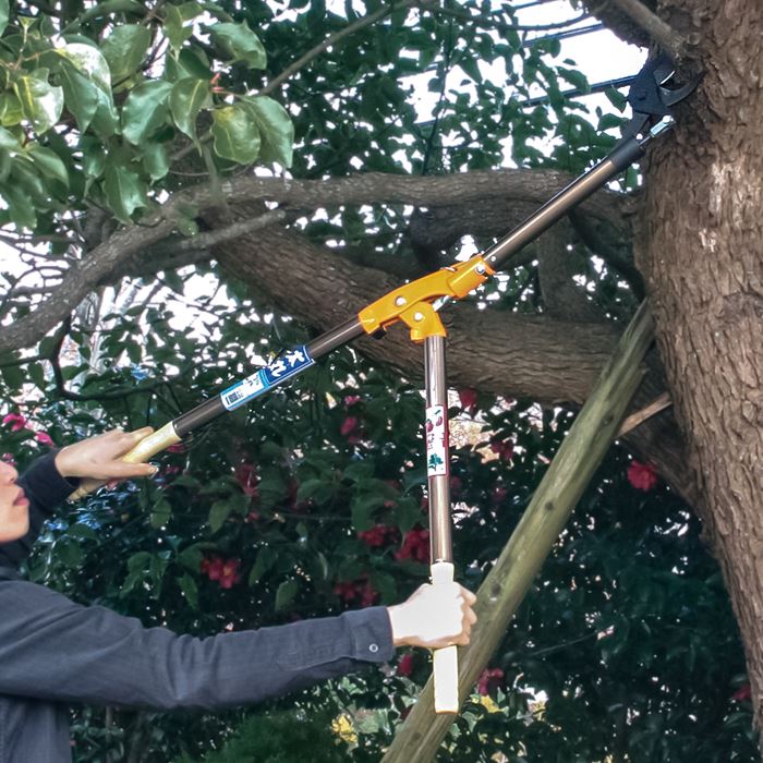 テコの力で直径40mmまでの枝を簡単に切断できるハサミです。美しい切り口に仕上がります。剪定(せんてい)作業、剪定した枝を細かく切断するのに便利です。