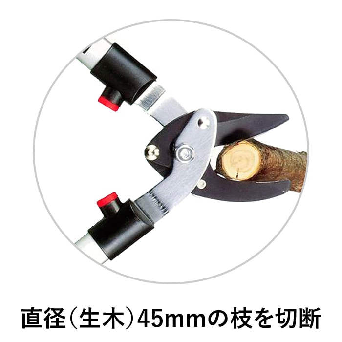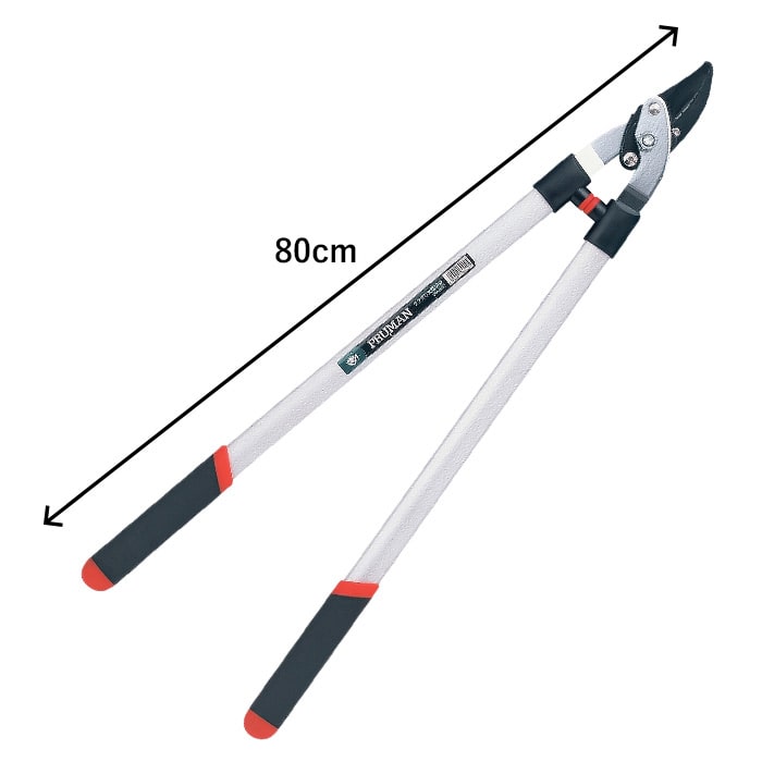テコの原理を利用して切るので、半分の力で枝を切ることができ、疲れず、楽に作業ができます。切れ味のよい刃は切り口をつぶさないので枯れ込みを抑えます。柄はアルミ楕円(だえん)パイプを採用して約4倍の強度と、グリップはエラストマー樹脂によって滑りにくくなっています。