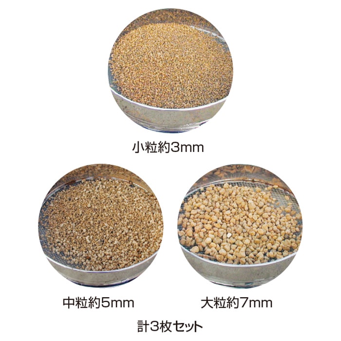 ハンドルを握ってふるいを前後にスライドさせるだけで3段階の細かさにふるい分けられます。一度にふるい分けられる用土は約3L(5号鉢2個分)です。重いふるいを持たずに作業ができます。国内で厳重な品質管理の下、製造されています。