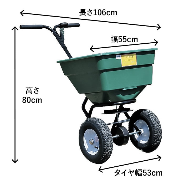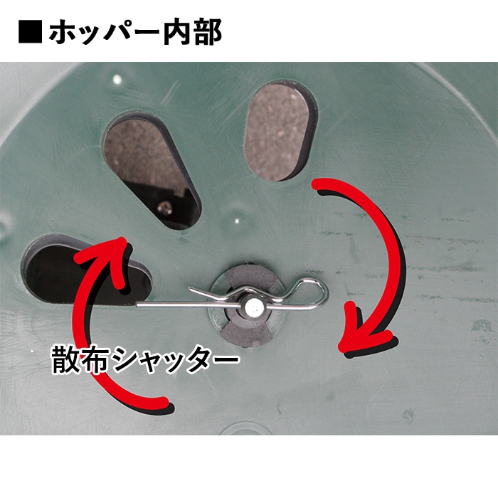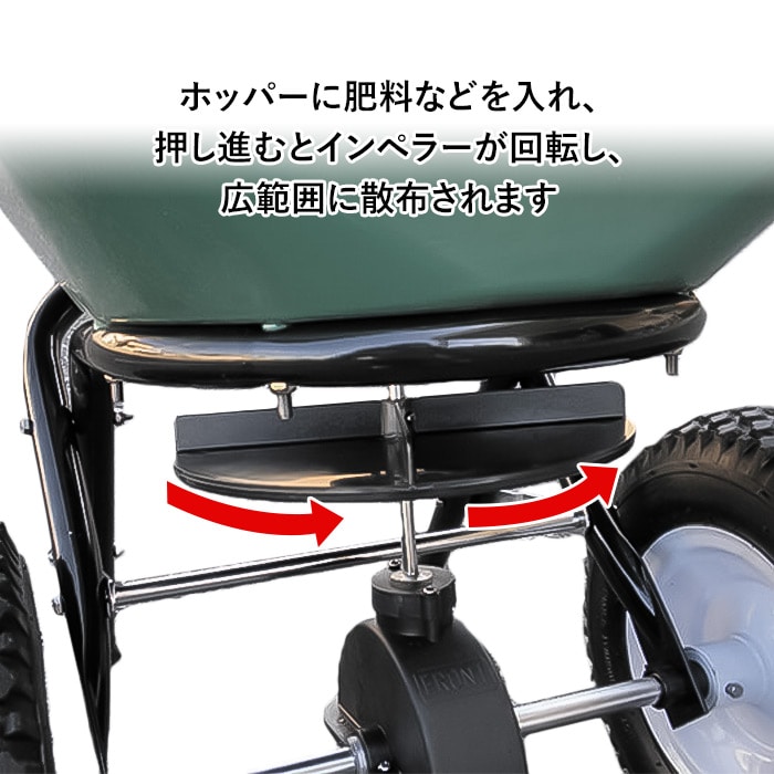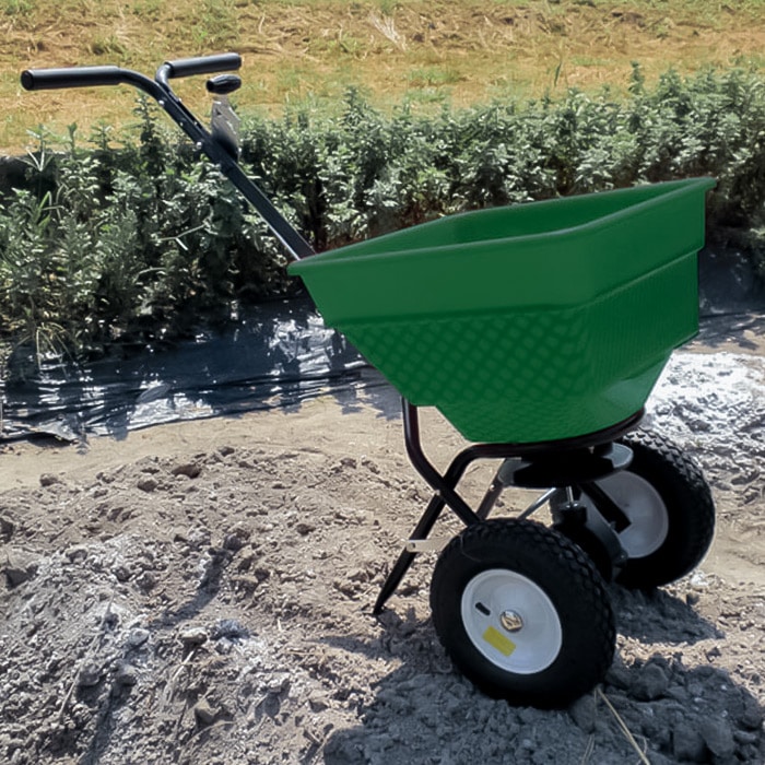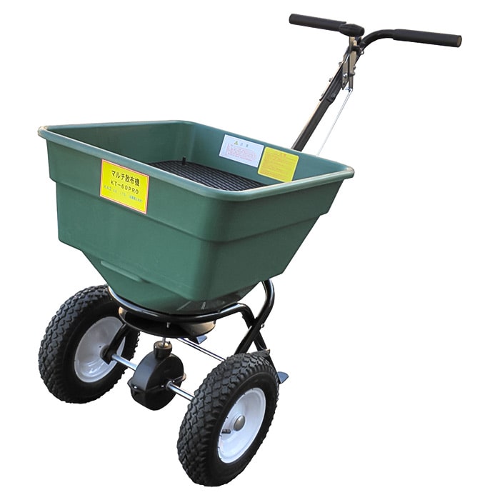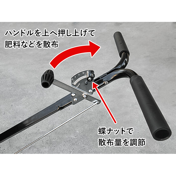 肥料や土壌改良材、除草剤などの顆粒(かりゅう)や粉を畑に散布する際に使用します。畑の中を押し進むことで広範囲への散布が楽にできます。