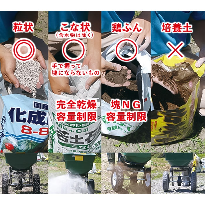 畑への肥料や土壌改良材散布に便利