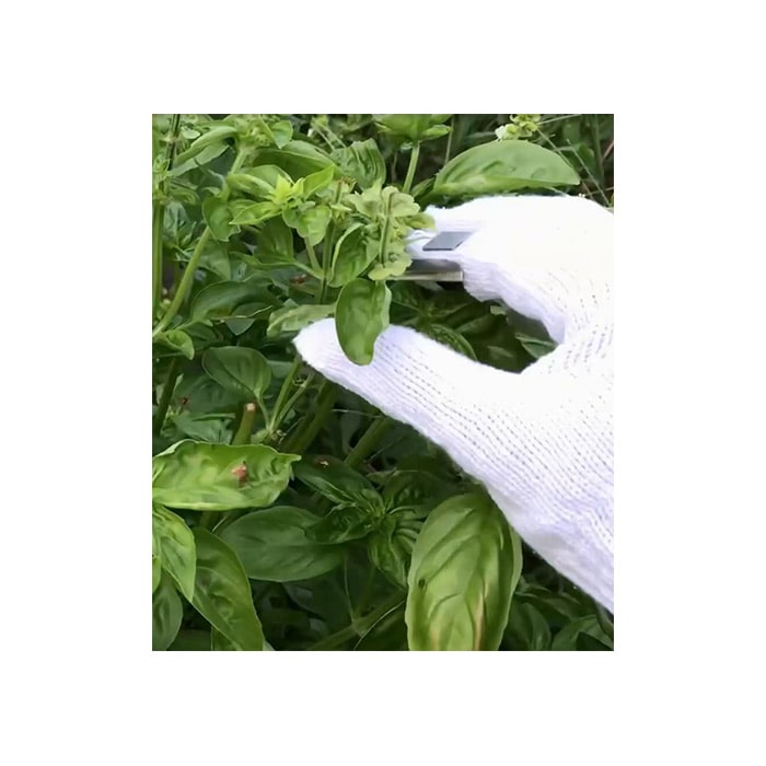 葉っぱなどで混み合った場所などの収穫に便利です。I型はハーブ等の葉を摘んだり、摘芯に。V型はキュウリやナスの収穫に。R型は収穫だけでなくつるの処理や棚を組むときの麻ひもを切るのにも便利です。さびにくくお手入れが楽なステンレス製。