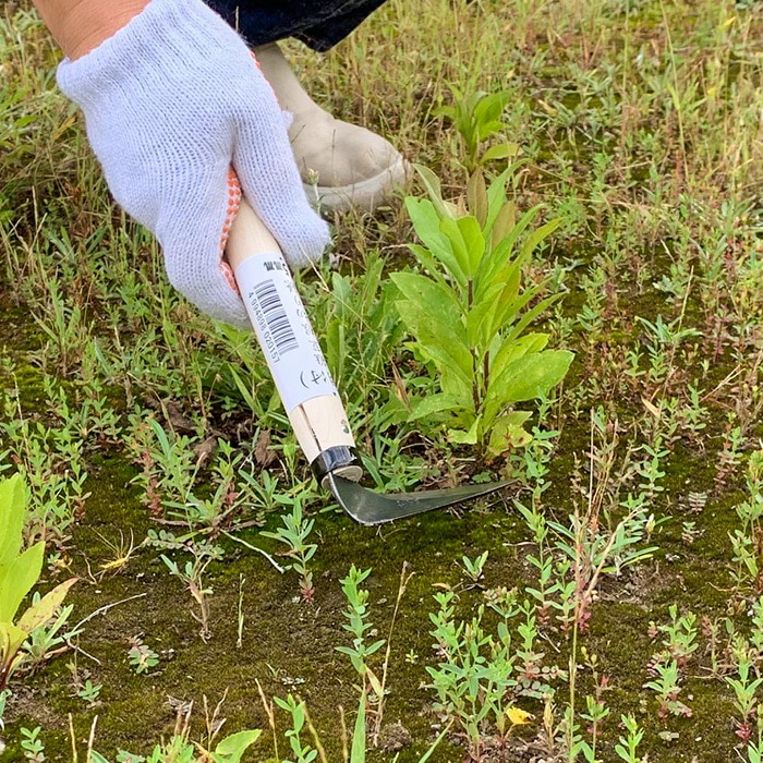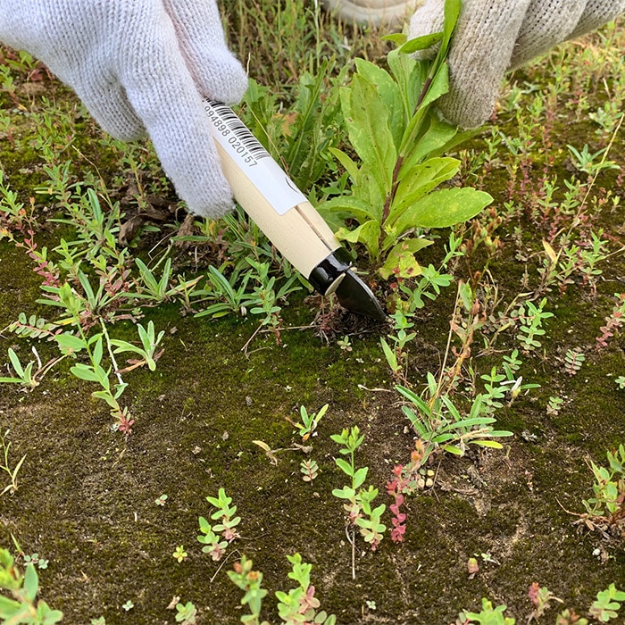 先端がとても細く、刃の切れ味がよいので草取りがとてもはかどります。先が細いので地面に差して根から切って除草もできます。刃は新潟三条の職人が一本一本丁寧に手作りしており、切れ味抜群です。