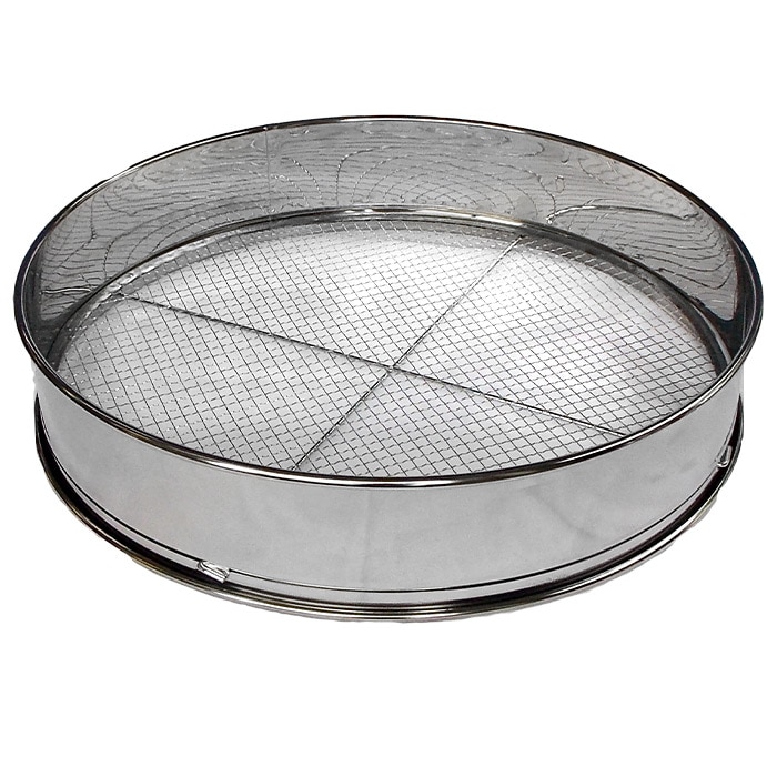 ステンレス園芸フルイ トレーシート付 フルイ枠(写真のフルイ枠には中粒網がセットされています)
