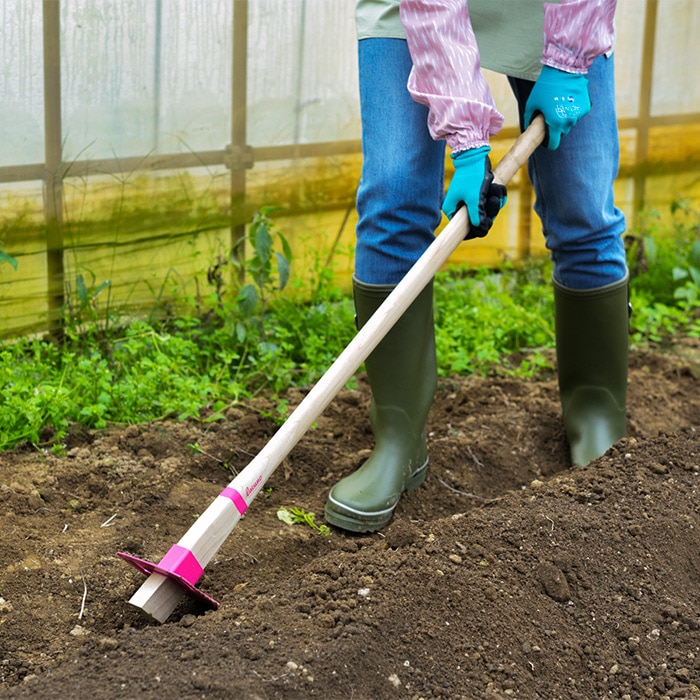 頭部色を女性にも親しみやすいピンクに統一し、さびに強いステンレス鋼を使用。頭と柄が取り外し可能で持ち運びに便利です。