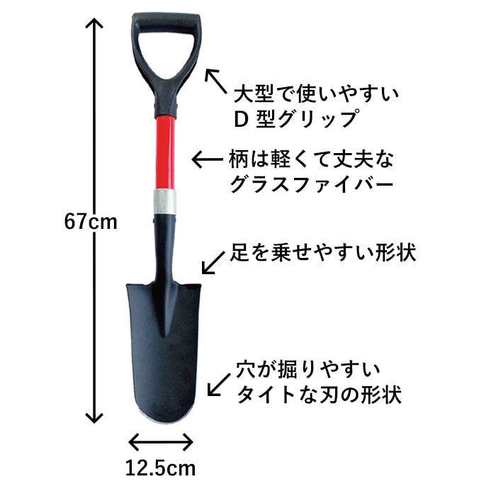 大型ショベルと移植ゴテを融合させ、目的・使いやすさを一つにしました。