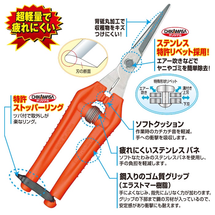 野菜、果樹の手入れ・収穫、園芸全般にご使用いただけます。