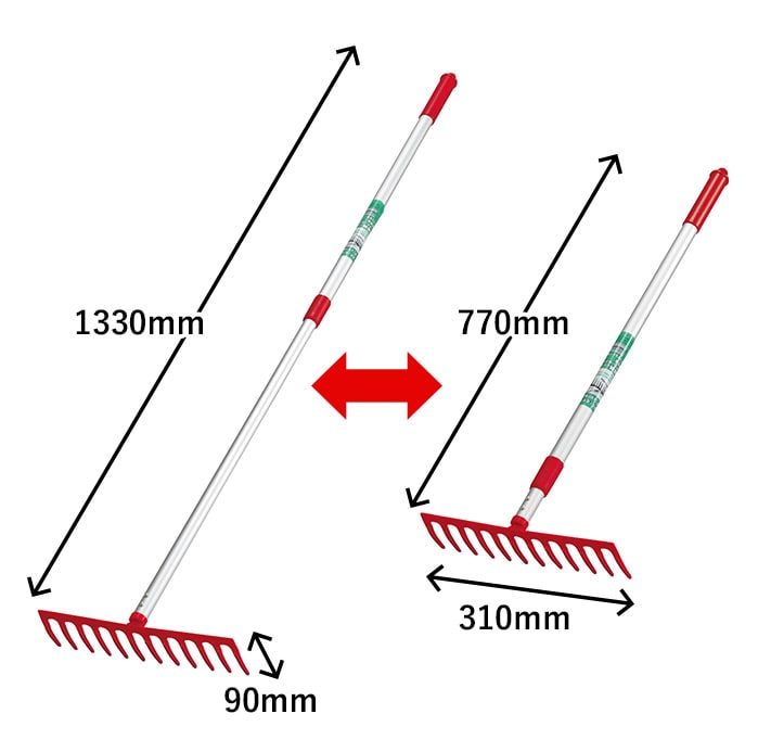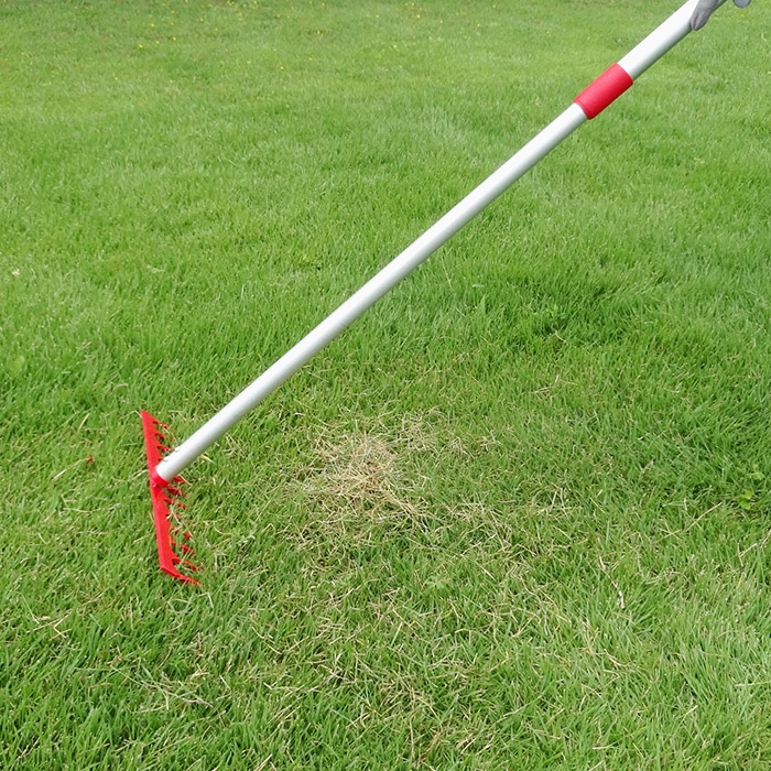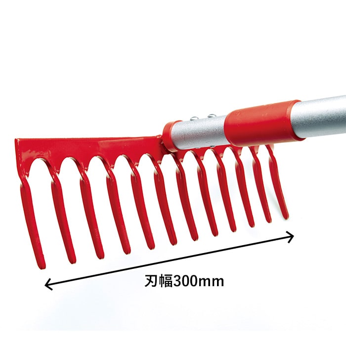 12本の爪で芝生の「サッチ」をきれいに取り除きます。使いやすい長さに調節可能な伸縮式アルミパイプ柄です。