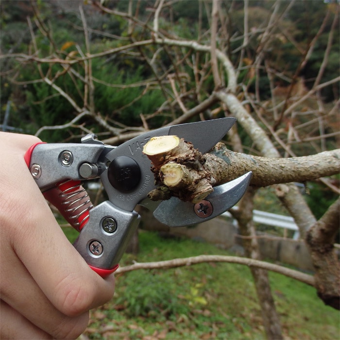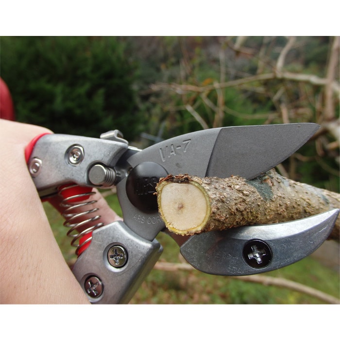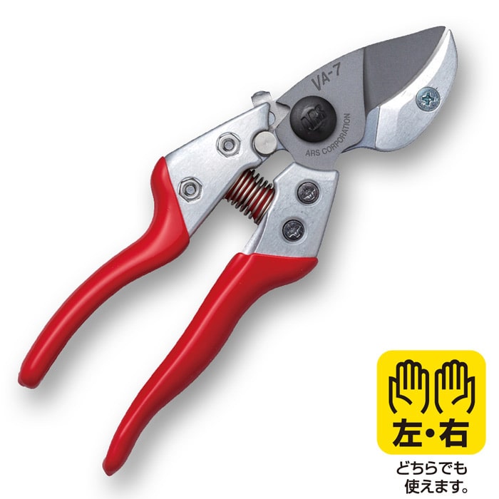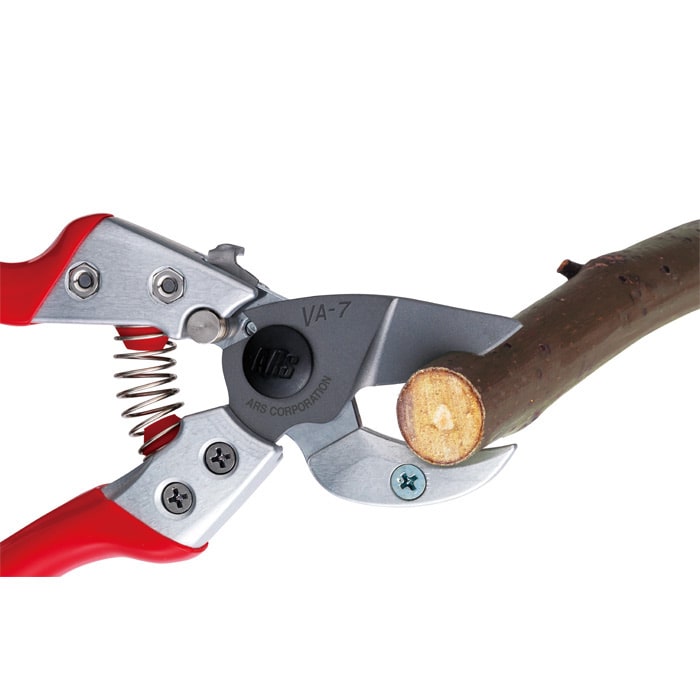 - 【アンビル式剪定鋏 VA-7Z】■サイズ(約):全長:約180mm、刃長:約35mm ■重量(約):約215g ■材質:刃部/高炭素刃物鋼、アンビル/亜鉛ダイカスト ■切断目安:生木直径22mm以下 ■表面処理方法:切刃/フッ素樹脂加工、刃・受刃/ハードクローム仕上げ