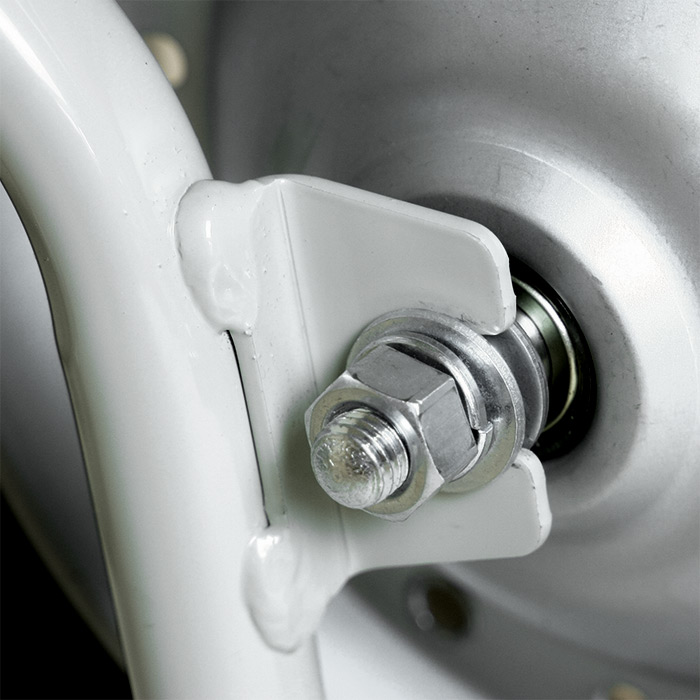 フレームは直径25.4mm×肉厚1.4mmのパイプをロボットが溶接し、高強度と高剛性を実現しています。バケット(皿)は板厚0.8mmで、溶解亜鉛メッキを塗布しているため、長期間さびを防ぎます。農業・園芸で使用する土や肥料、収穫物などの運搬に安心してご使用いただけます。