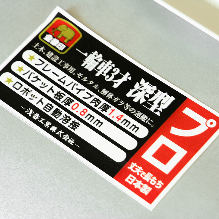 フレームは直径25.4mm×肉厚1.4mmのパイプをロボットが溶接し、高強度と高剛性を実現しています。バケット(皿)は板厚0.8mmで、溶解亜鉛メッキを塗布しているため、長期間さびを防ぎます。農業・園芸で使用する土や肥料、収穫物などの運搬に安心してご使用いただけます。