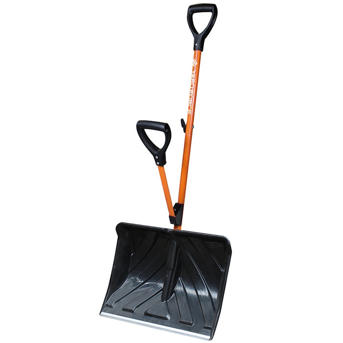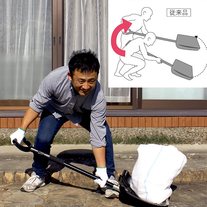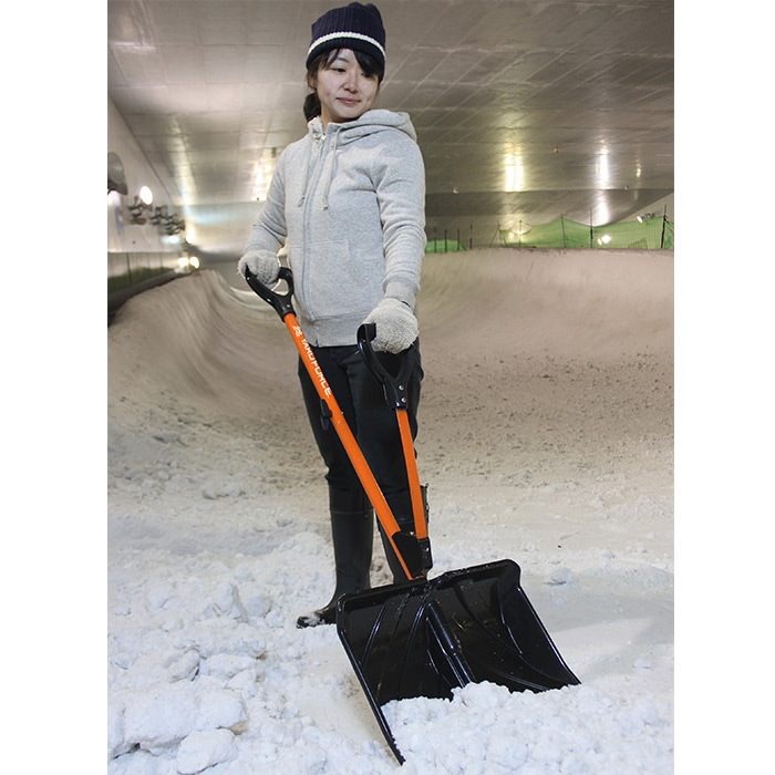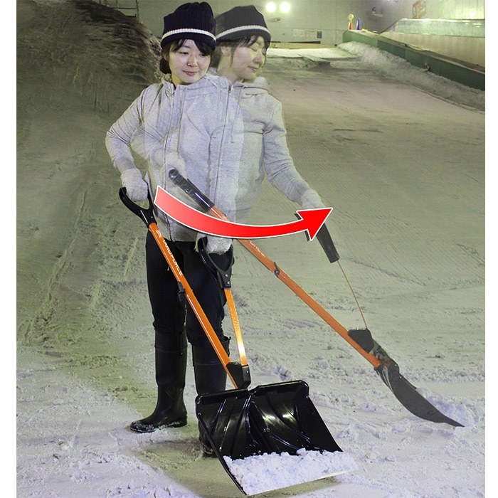 人間工学により開発されたバネのサブハンドルが雪上げの負担を軽減