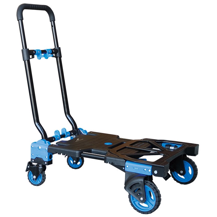 - ■サイズ(約):折り畳み時/全長640×幅385×高さ130mm、4輪台車時/全長630×幅385×高さ910mm(荷台寸法 全長565×幅385mm)、2輪台車時/全長250×幅385×高さ1340mm(荷台寸法 全長230×幅385mm) ■重量:約7.2kg ■材質:スチール、PE、ABS ■耐荷重(約):2輪台車時/最大70kg、4輪台車時/最大120kg ■中国製 ■メーカー名:(株)和コーポレーション