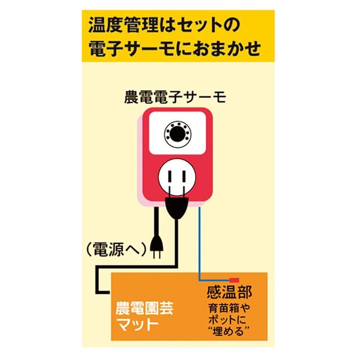 ※別売りの「農電園芸マット(追加用)」を使用する場合、サーモ1台で1000Wまで接続できますが、2枚以上接続する場合は電気工事店へご相談ください。