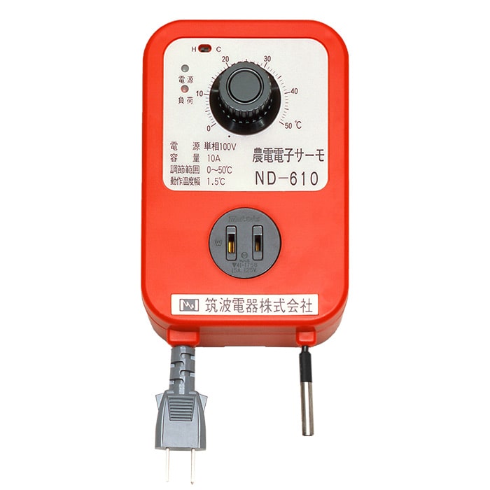 【農電電子サーモ】「農電電子サーモ」は高性能ICを使用し高感度で高精度、しかも使いやすい電子サーモです。農電ケーブルや「農電園芸マット」に「農電 電子サーモ」を併用すると、面倒な温度管理を自動化でき、電気代の節約にもなります。“省エネルギー効果の高い農電 電子サーモ”の併用をおすすめします。
