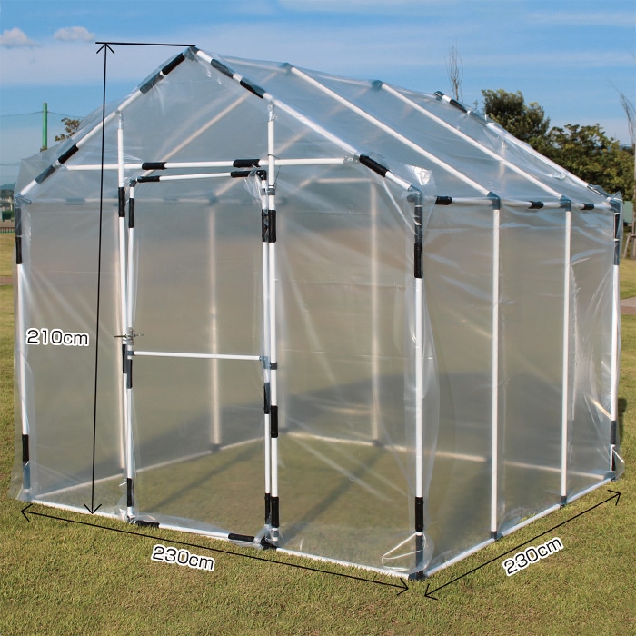 測定不要でパイプと部品を組み合わせるだけで、誰でも簡単に組み立てできます。前面のみドア付きのダイムハウスです。