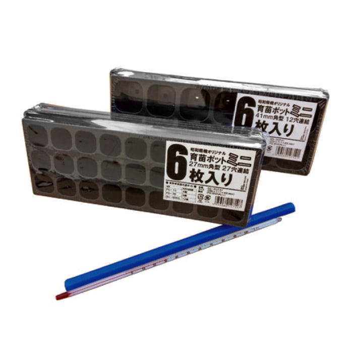 【育苗ポットミニ 27mm角型27穴連結】■サイズ(約):幅29.6×奥行き11.1×高さ4.5cm ■重量:約33g ■規格:27穴(3×9) ■材質:ポリスチレン ■中国製 ■メーカー:昭和精機工業(株)