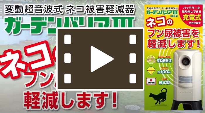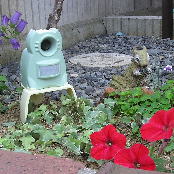赤外線がネコやハクビシンの動きをキャッチし、超音波を放射します。波長がランダムに変わることで、慣れを防止します。