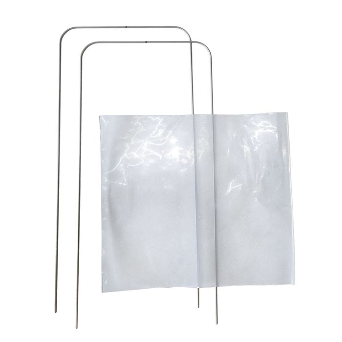 3~4月の定植は、低温や寒の戻りなどが心配ですが、そんな被害から苗を守るのが苗カバーです。保温以外にも、晩霜や強風、鳥の食害などを防ぐ効果もあります。また、ほかの被覆材のような換気の必要がないので、手間がかかりません。