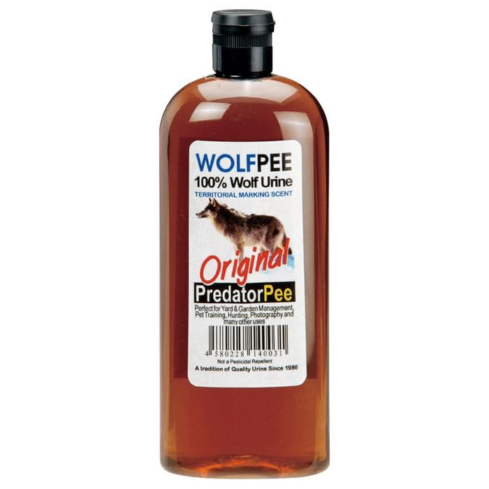 野生動物やイヌなどの天敵であるオオカミの尿100%の動物よけリキッドです。菜園ではイノシシなどの野生動物を寄せ付けません。