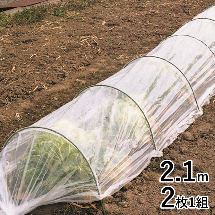 あらかじめフィルムにトンネル支柱をセットしてありますので、拡げて支柱を差し込めば簡単にトンネル栽培が出来ます。苗の育成に、風よけ霜よけに便利なセットです。