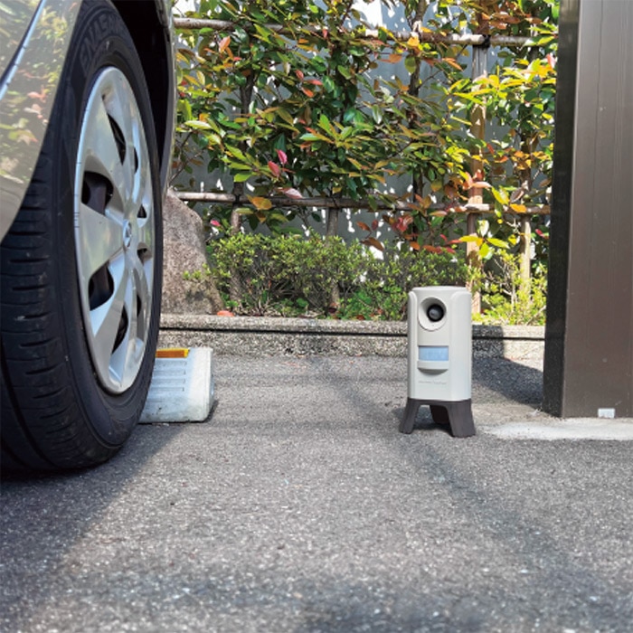 赤外線がネコやハクビシンの動きをキャッチし、超音波を放射します。