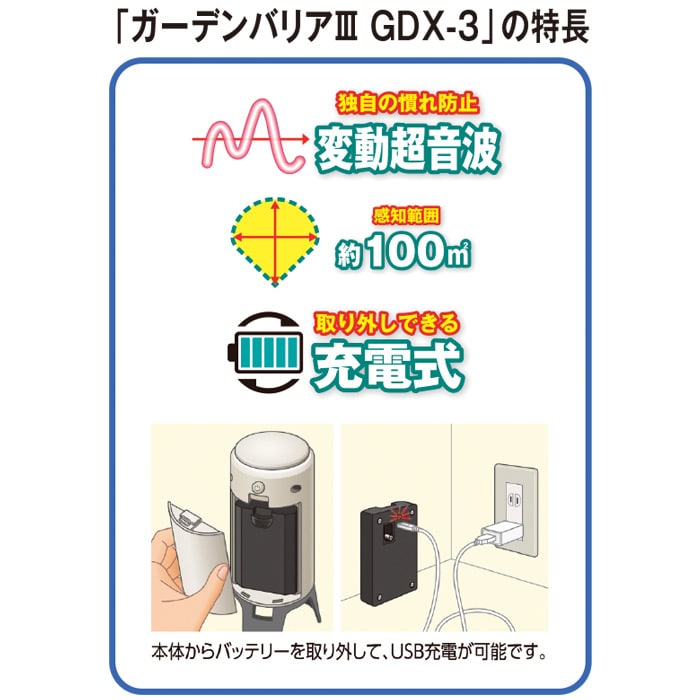 ガーデンバリアⅢ GDX-3(変動超音波式ネコ被害軽減器)