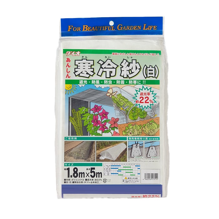 保温・防虫・防鳥・遮光・防風・防霜などに使用できます。遮光率は約22%です。