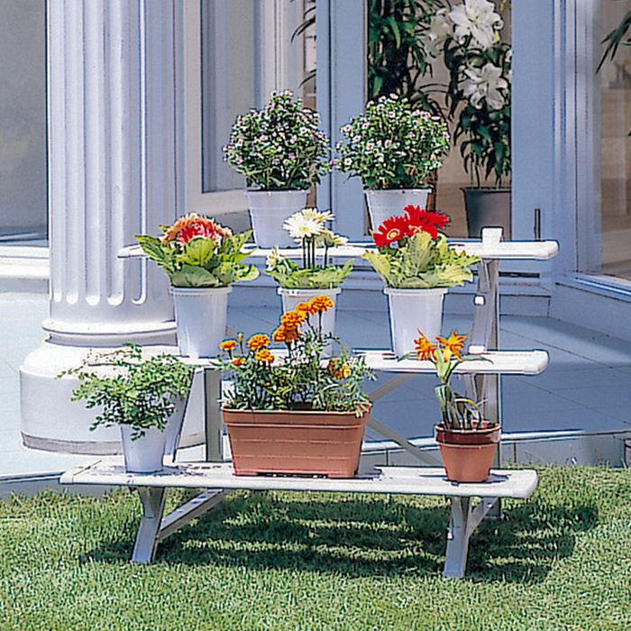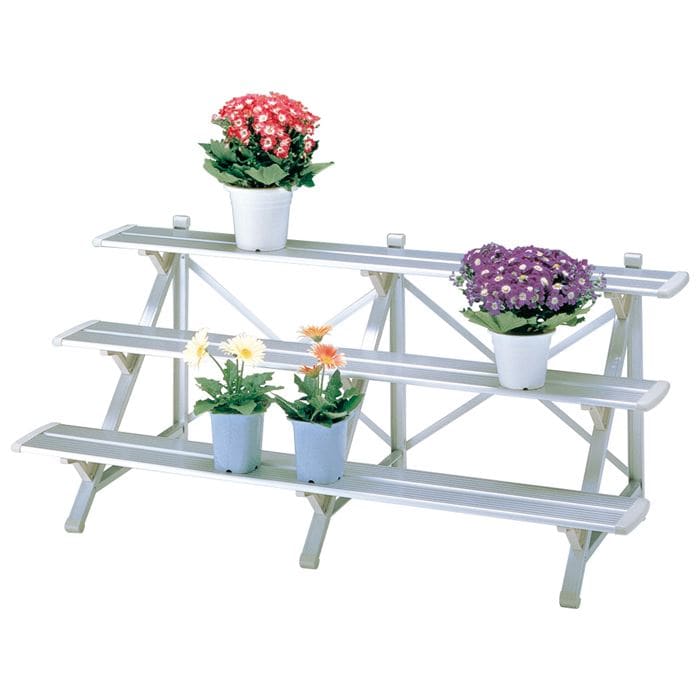 日差しや雨にも強いアルミ製の園芸棚です。ひな壇型なので場所を有効活用できます。また、軽いので移動も簡単。ベランダや庭をあなたの大切な植物で彩ります。