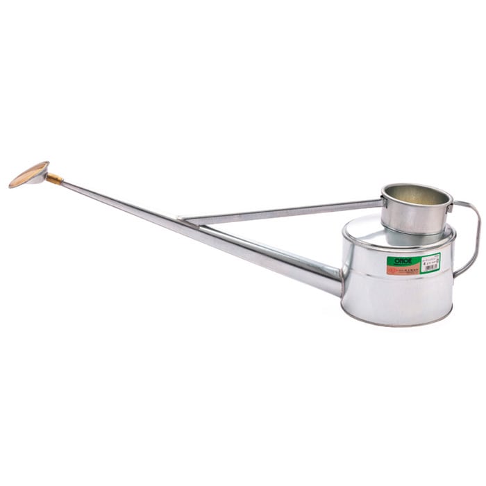 屋外でも使える丈夫な鉄製。こし網付きなので葉やごみなどが入り込まず目詰まりしにくいです。筒先の目が細かくきれいで柔らかなシャワーが出てくるため、植物を傷つけにくいです。