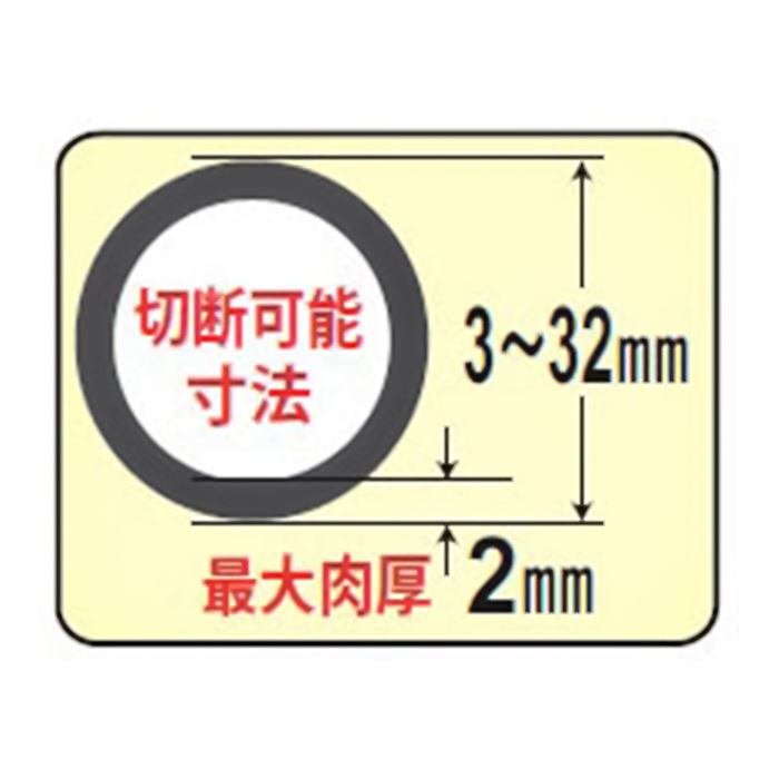 ステンレス管からスチール・アルミ・塩ビ管などあらゆるパイプ管に使えます。伸縮シャフトに内蔵ネジを採用し、ハンドルの上下スペースを必要としません。替刃収納BOXと、切断後のバリを取り除けるバリ取り付きです。