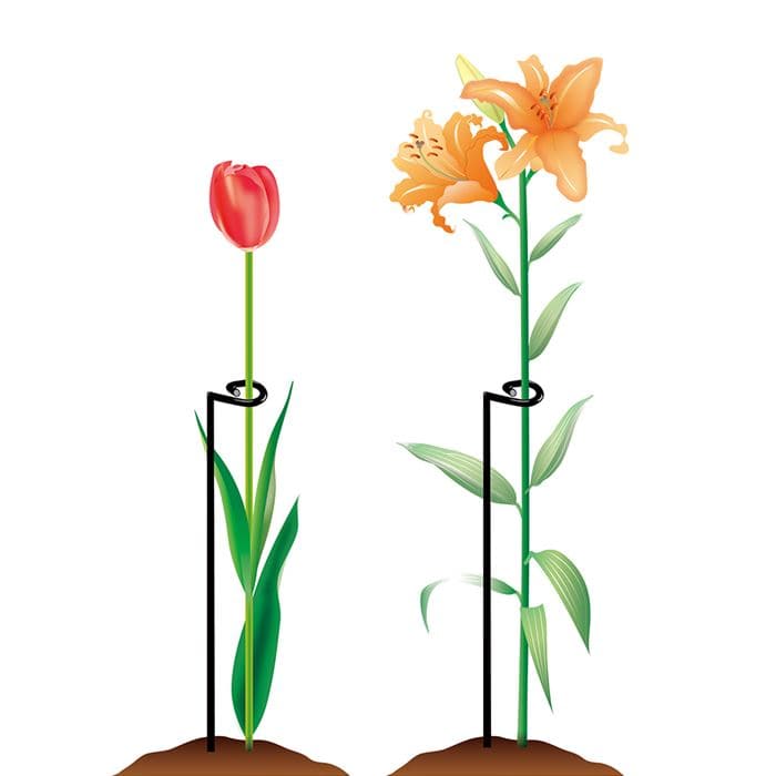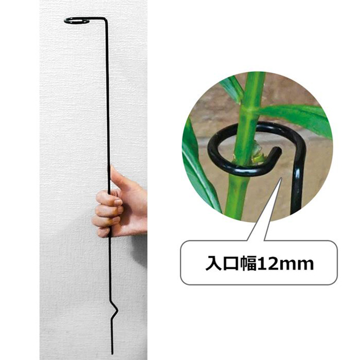 グラジオラス、チューリップ、ユリなど頭でっかちな植物から、草丈の高い草花も自然な美しさを保つ目立たない支柱です。一度茎に掛けたら外れにくいトップと、土中で回転しない構造で、本場イングリッシュガーデンの定番支柱の一つ。太鉄線(直径4mm)にカチオン電着塗装をしているので、さびに強く長く使えます。海外でも人気の商品です。