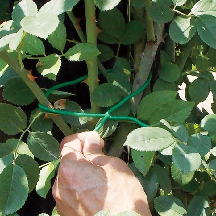 好みの形に曲げることができるので、手が入りにくい枝間やバラのようにとげのある植物の誘引も簡単、安全に作業ができます