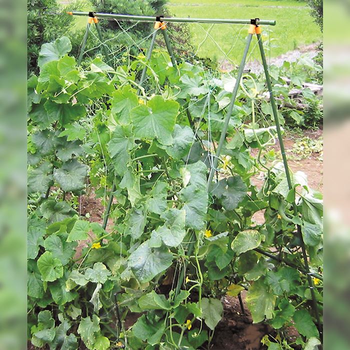 脚となる2股支柱が3組・上部の補強となる支柱が1本・園芸ネットが2枚・ネットの留め具用パッカーが10個入りっているセットになっており、この商品一つでつるもの用棚が1個簡単に作れます。キュウリ・インゲン・エンドウなどのつる性植物にピッタリです。