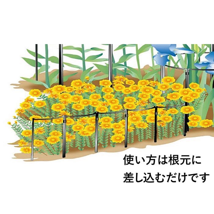 花壇や菜園、コンテナなど、栽培シーンに合わせた使い方ができる便利な支柱です。シンプルで目立たない線材ですから植物のシルエットを乱さず、自然な美しさを楽しめるのもうれしい点です。