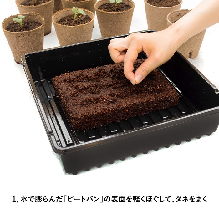 これまでは苗を購入して利用していた方々へ向けて、タネから苗を作るための便利なグッズをセットにしました。